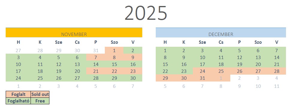 Foglalási naptárunk folyamatosan frissül. Foglalás végelegesítéséhez a teljes árat szükséges átutalni. Az összeg beérkezését minden esetben visszaigazolom.